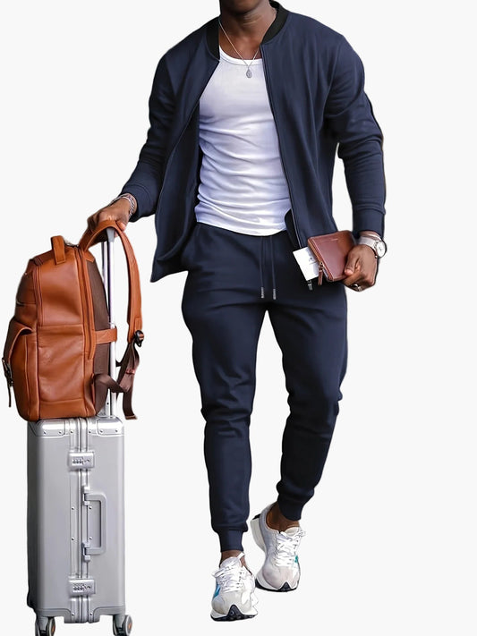Herr sportig träningsdräkt set – Modernt fritids- och activewear-outfit för resor, träning & vardag